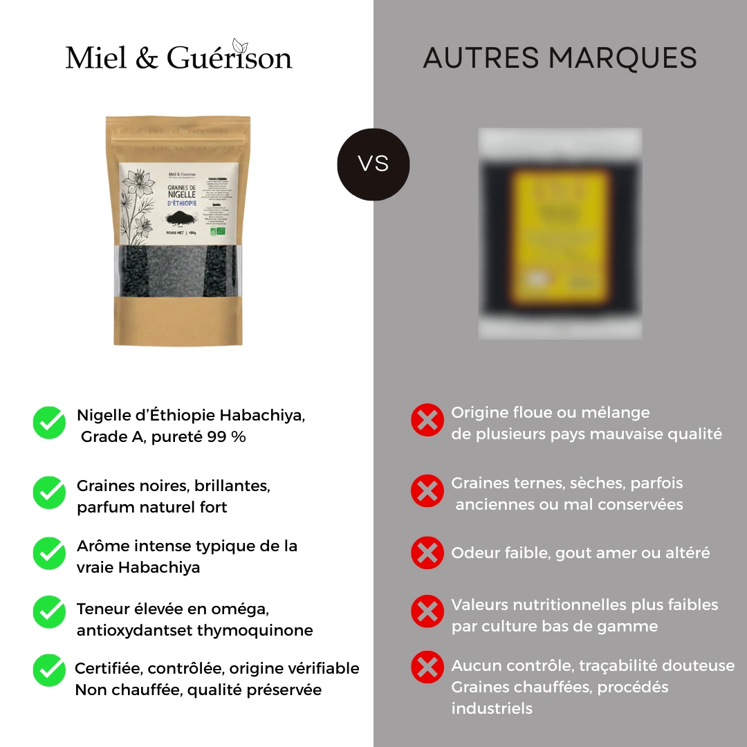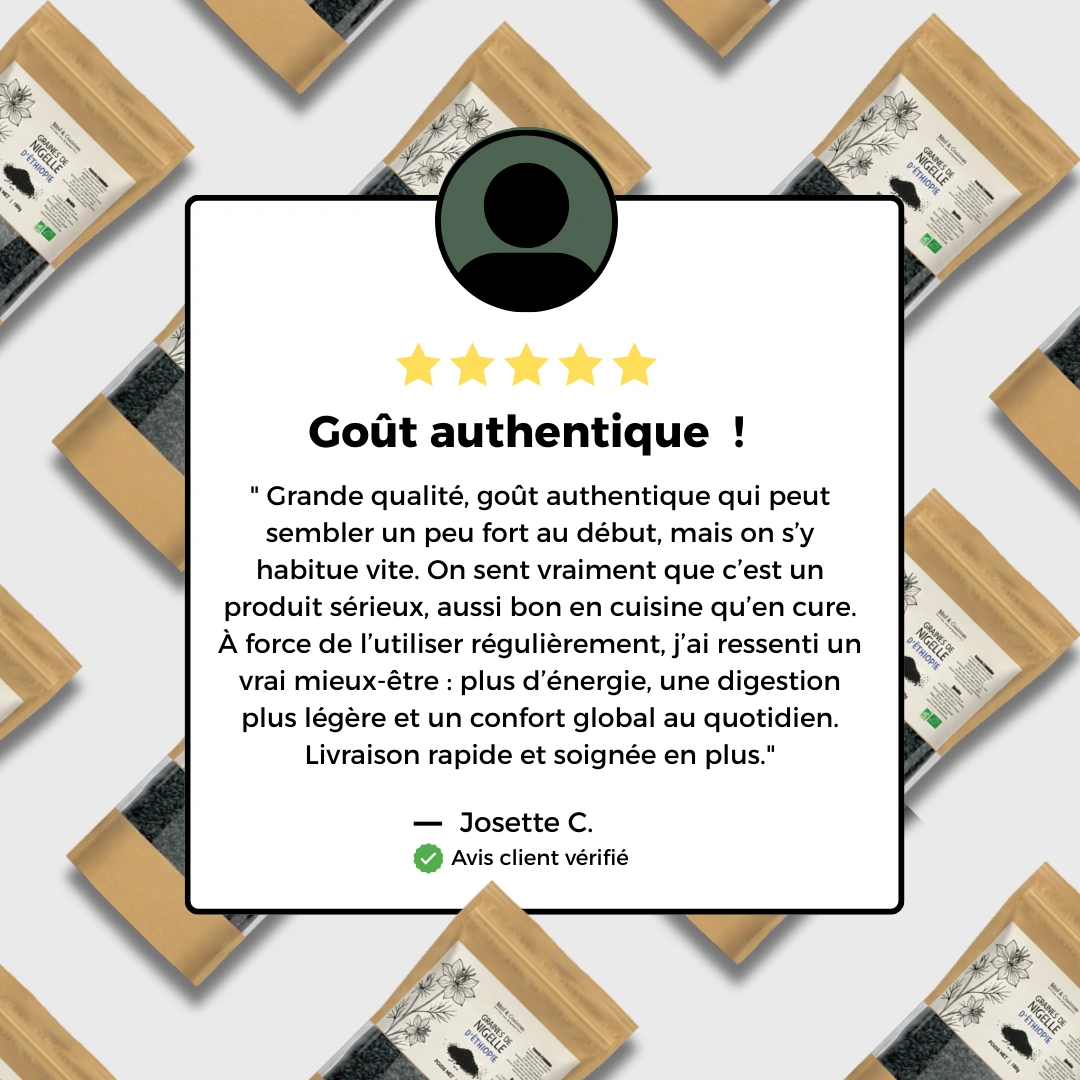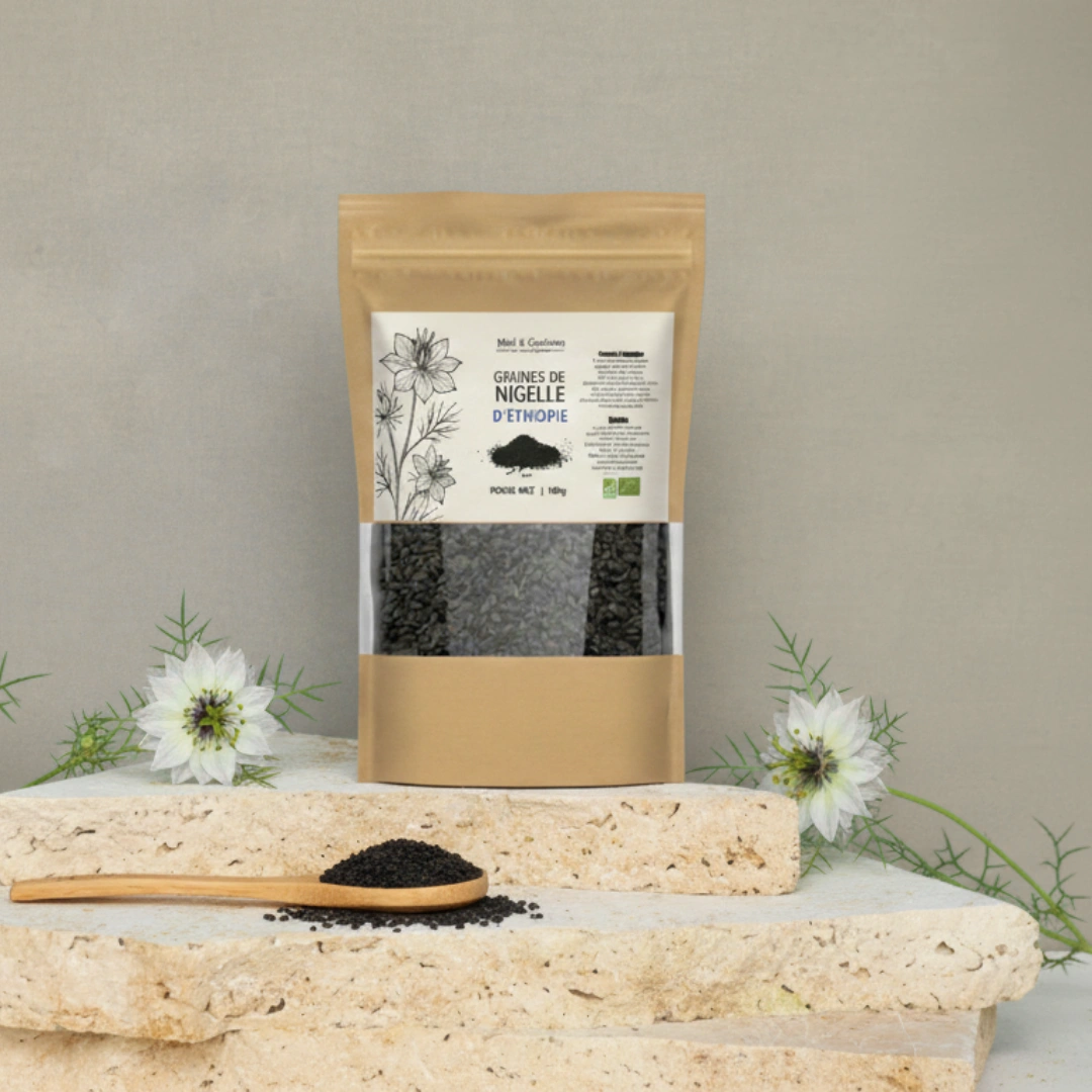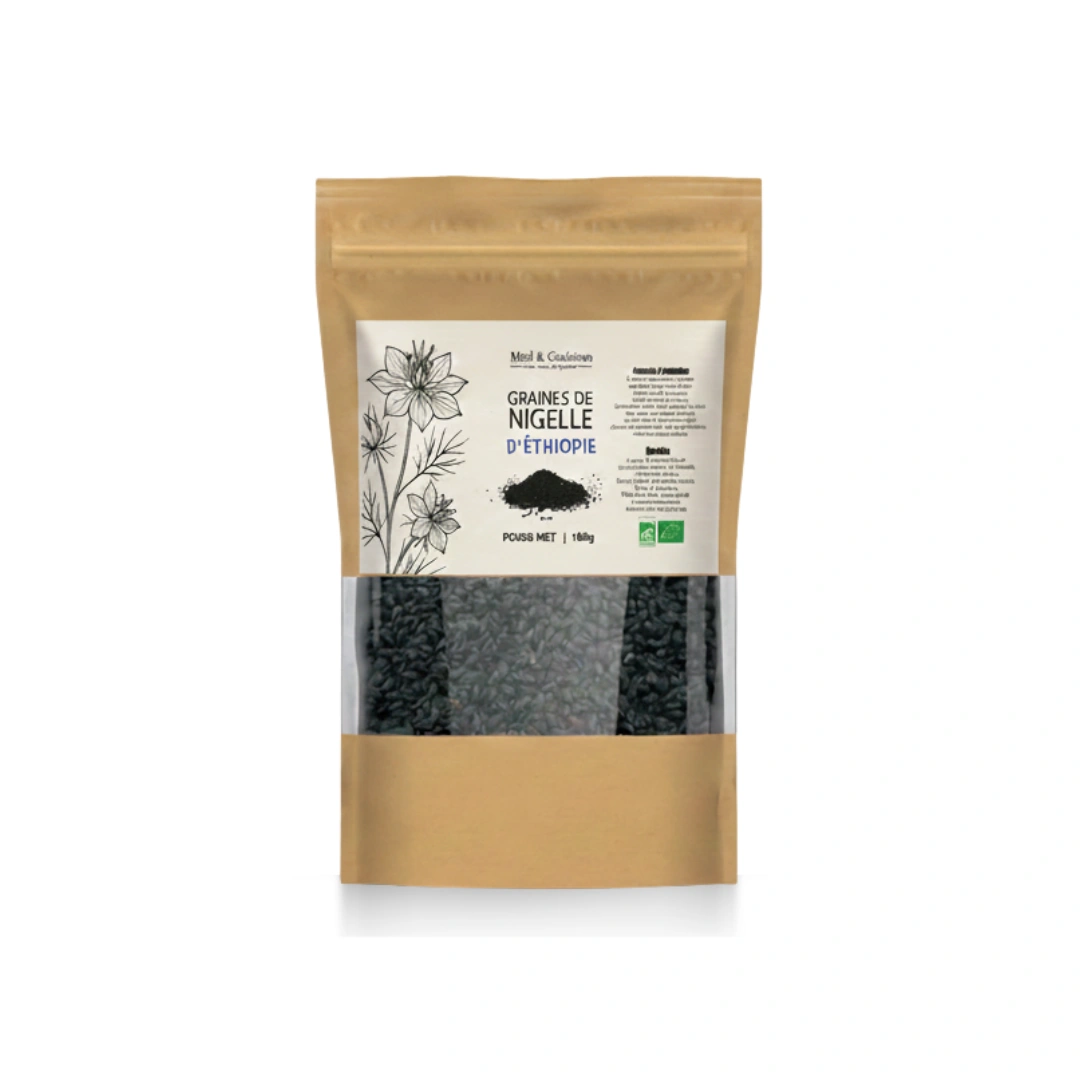 Les graines de nigelle entières habachiyya, aussi appelées habba sawda, sont utilisées depuis des millénaires pour leurs abienfaits exceptionnels sur la santé. Issues de la plante Nigella sativa, nos graines sont cultivées en Éthiopie, une origine reconnue pour la qualité supérieure et la forte concentration en principes actifs.