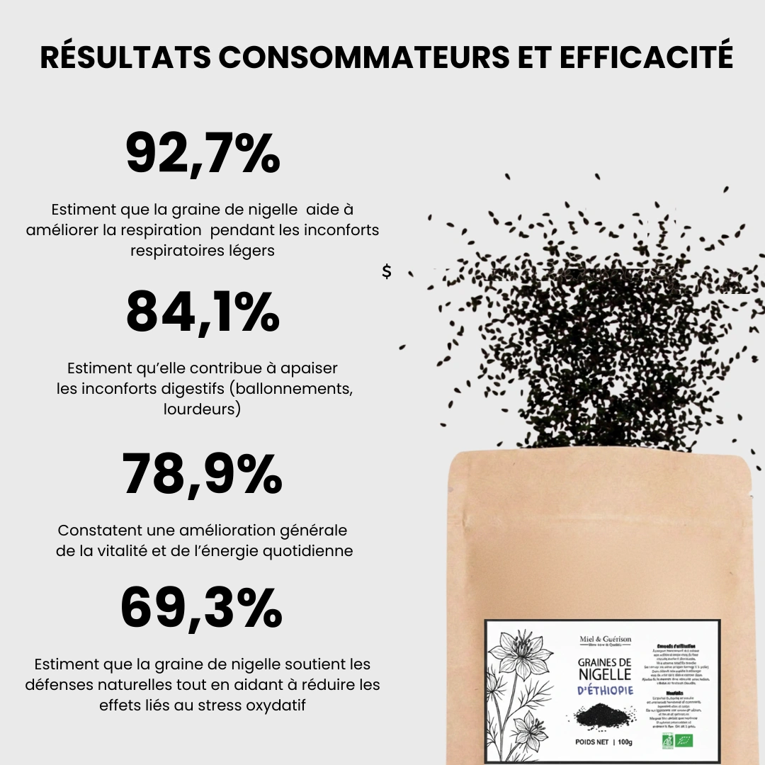Leur efficacité est principalement due à la thymoquinone, un puissant antioxydant naturellement présent dans la graine. Ce composé actif joue un rôle clé dans le soutien du système immunitaire, la protection des cellules contre le stress oxydatif et l’équilibre général de l’organisme.
