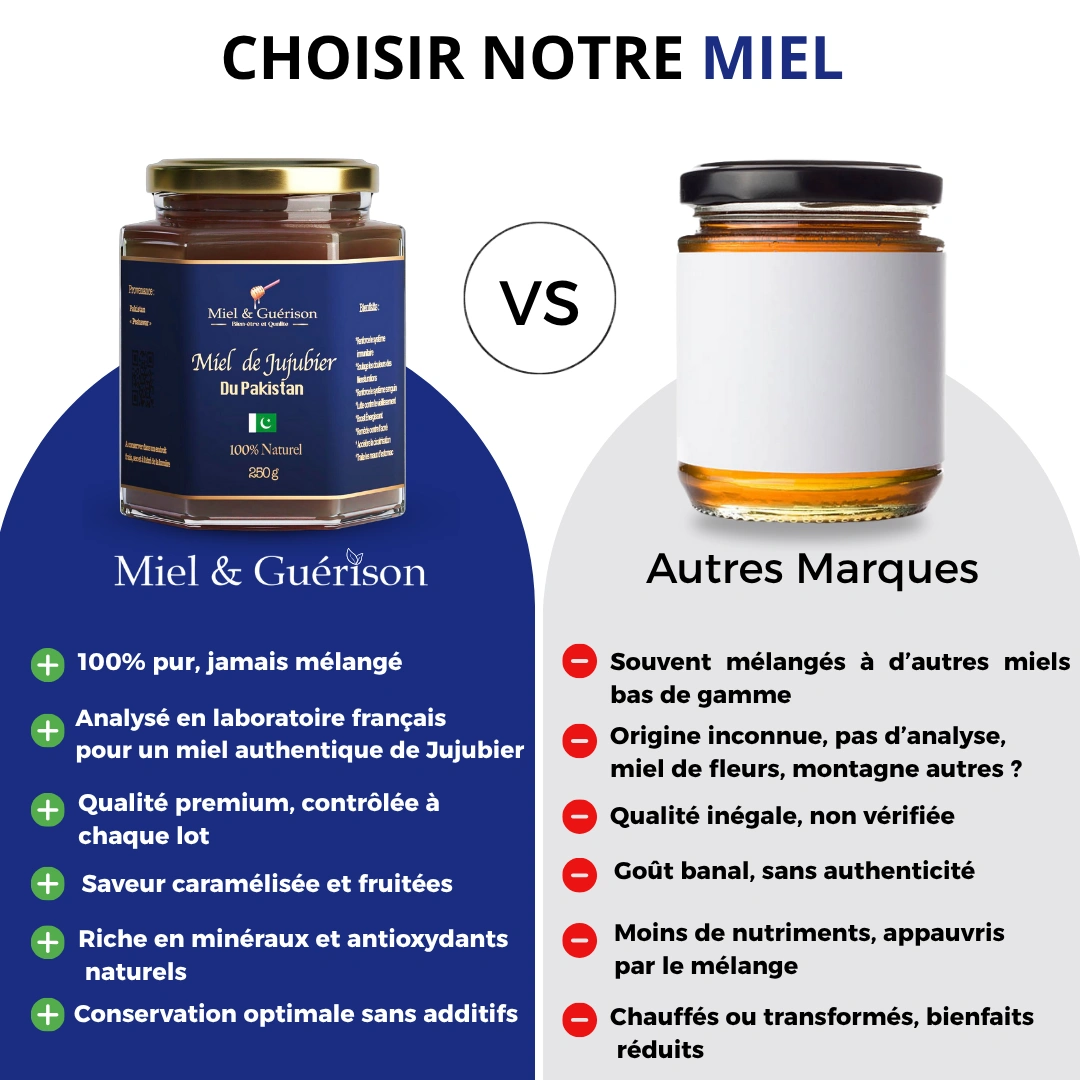 Le miel de jujubier du Pakistan et un véritable produit bien être, il comporte de nombreux bienfaits en plus de son goût et à sa saveur délicate. Voici un aperçu :