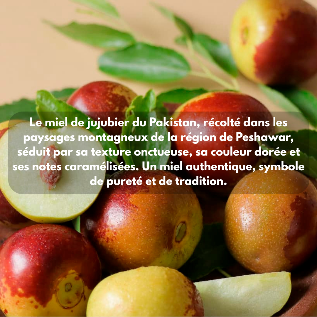 Le miel de Jujubier du Pakistan et un miel très réputé dans le monde grâce à son goût et ses nombreux bienfaits naturels. Ce miel représente un véritable bijou pour le Pakistan, pays reconnu initialement pour son artisanat ou encore sa cuisine.