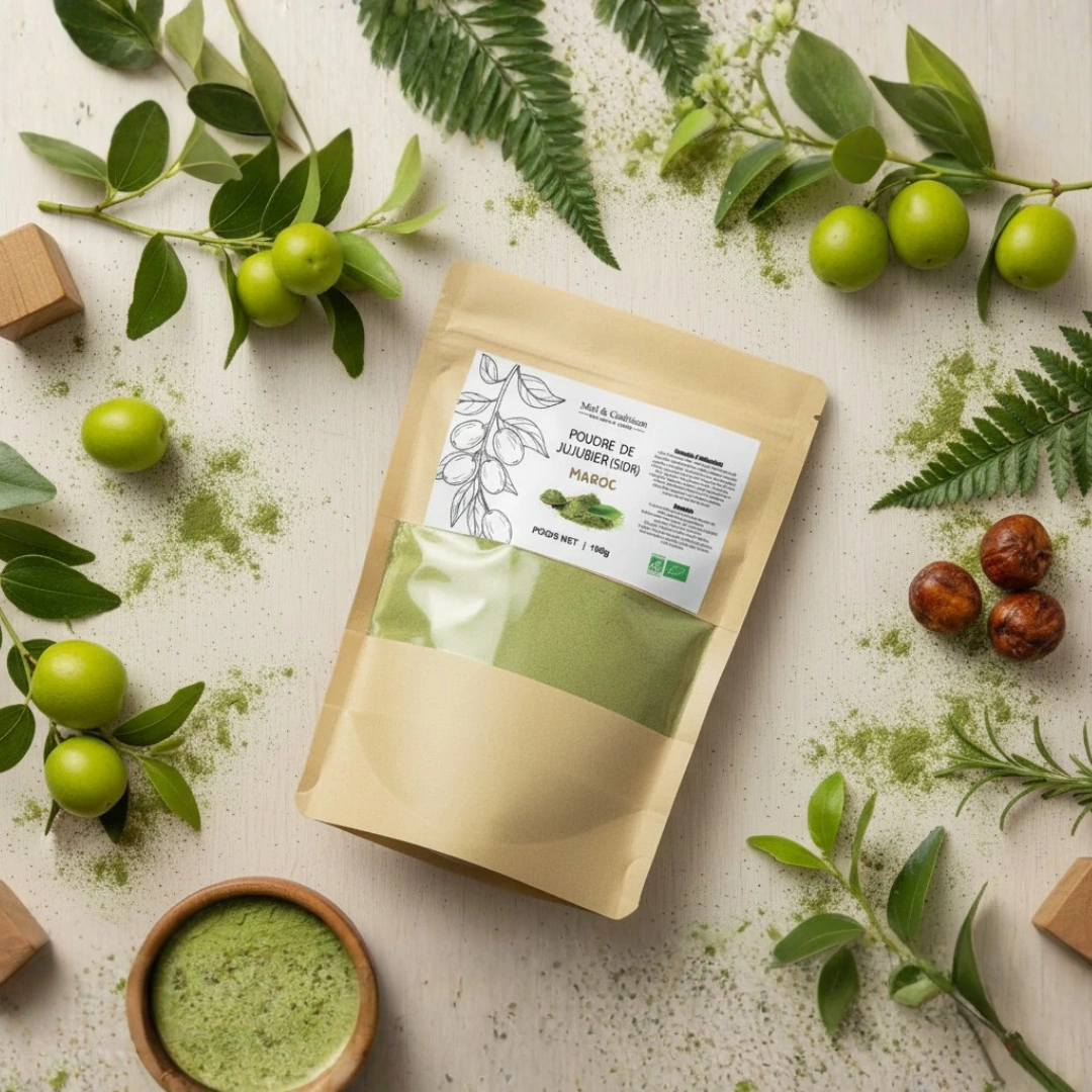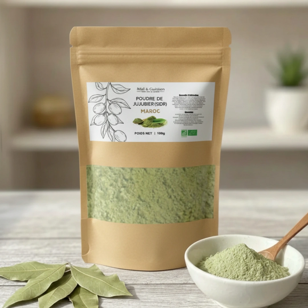 La poudre de Jujubier (Sidr) est un trésor de la tradition ayurvédique et orientale, issue des feuilles séchées du Jujubier. Riche en saponosides et mucilages naturels, elle nettoie, purifie et apaise la peau et le cuir chevelu sans les agresser. Idéale pour tous types de cheveux, y compris les cheveux colorés, elle préserve la couleur tout en apportant volume, brillance et vitalité.